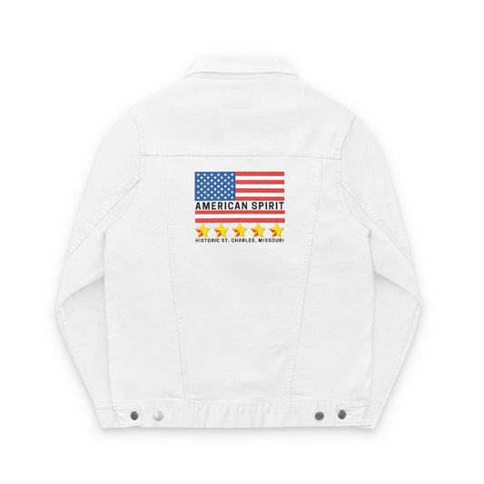 American Pride Unisex Denim Jacket, Embroidered USA Flag, Casual Summer Style, Outdoor Fashion, Great for Independence Day, Gift for Him/Her